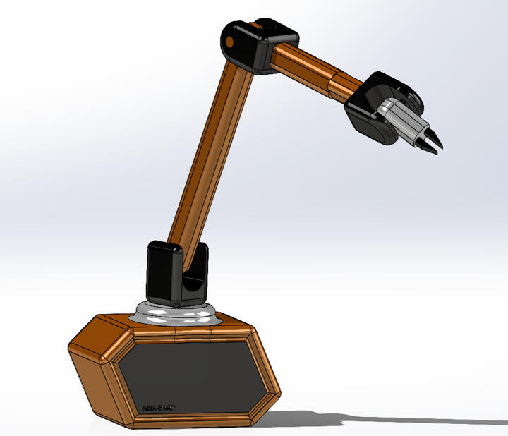 I am currently designing a 6 DOF robot arm. ARM-E's first mission is to stack blocks, he will achieve this goal through careful design, engineering, and Arduino code. Stepper motors and servos will be controlled in a 3D printed housing. The initial prototype to the right was modeled in Solidworks to base inverse kinematic equations upon and to serve as a proof of concept. Individual components will be further refined. The end goal is to use ARM-E to assist with household tasks and eventually be used in conjunction with a surgical instrument.