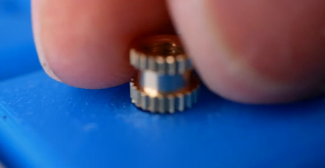 Heat set inserts selected to allow parts to be mechanically linked. Metal insert preferable to printing threads since plastic threads will strip over time.