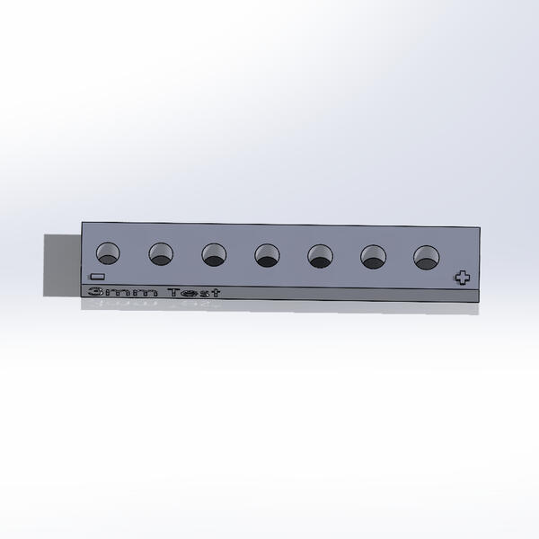 Three hole test strips were created and printed to test hole diameters variation during printing. Hole sizes will be adjusted larger in CAD, (ex. 3.5mm for a 3mm hole).