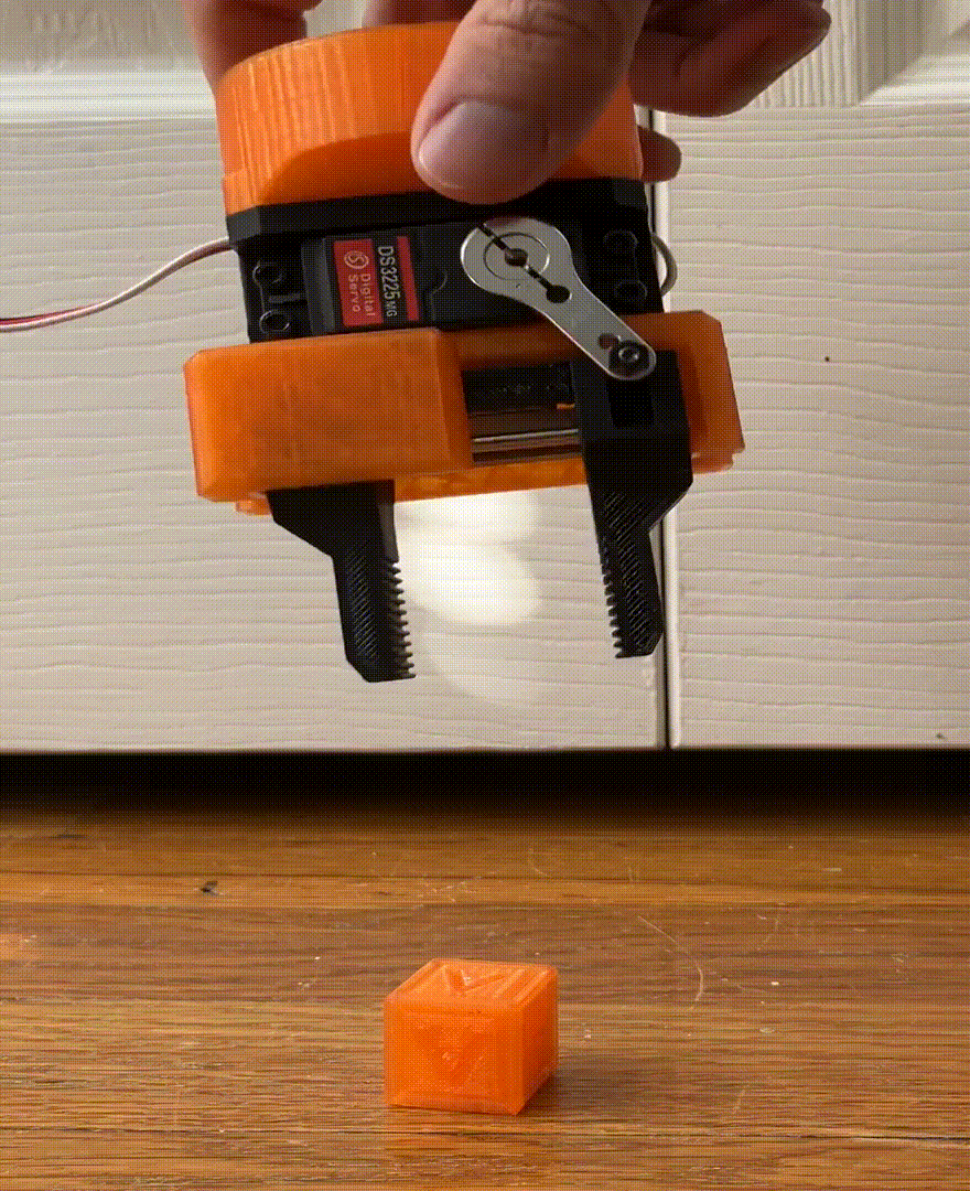 Groove in the jaw that the servo arm sits in was also made deeper to ensure it would not slip out. The updated parts allowed for picking.
